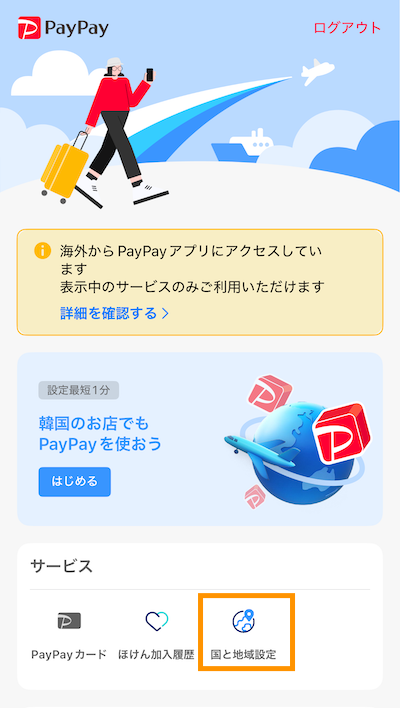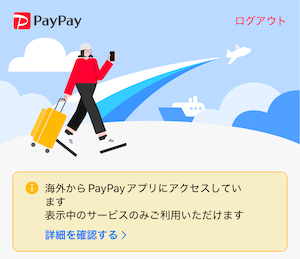 海外からPayPayアプリを開いたら、「海外からPayPayアプリにアクセスしています」とエラーがでて使えない!